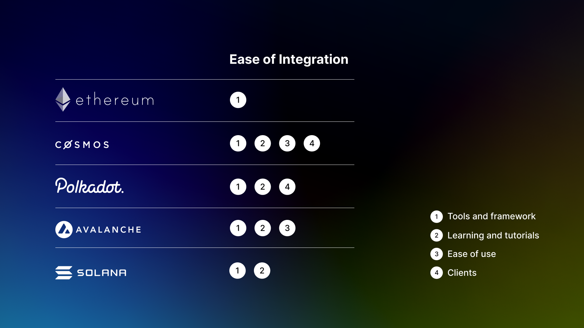 As a fellow developer, I have evaluated these blockchain ecosystems on specific criteria and conclude with these results of my evaluation: